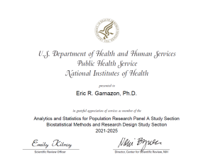 Dr Gamazon has been appointed a standing member of the NIH Biostatistical Methods and Research Design (BMRD) study section.