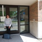 Professor Ruthann Brintnall at the front door of the Family Health Center.