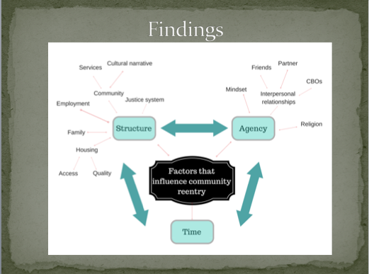population, explore those findings in light of the structure versus agency discourse, and identify areas for further inquiry and program development. Findings include the structural nature of barriers to community reentry, the importance of interpersonal relationships and motivation in successful community reentry from the perspective of the participants, and the influence of extended periods of physical and social isolation on agency for this population. Implications for practice, policy, and inquiry are discussed. Questions? Contact Erin McCauley: mccauley.erin@comcast.net