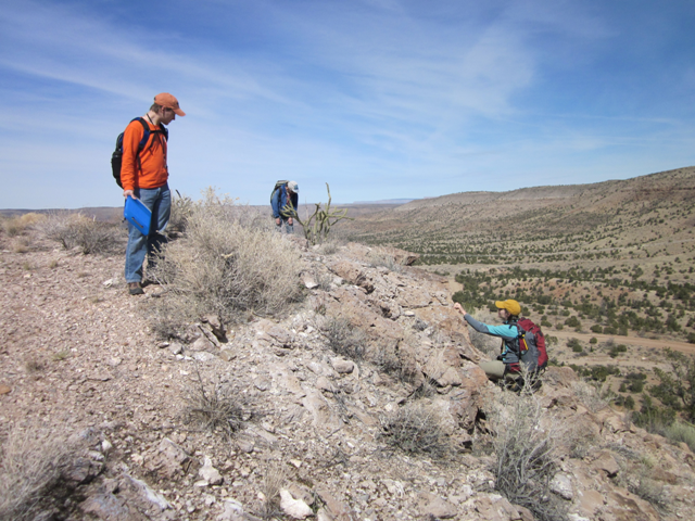 Examining an outcrop of the Peach Spring Tuff